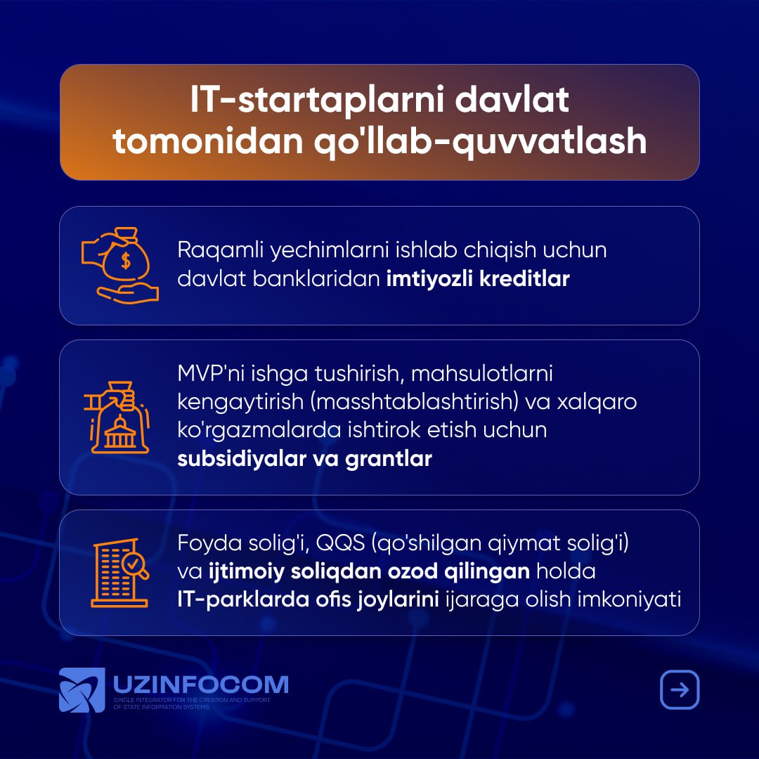 - Low-interest loans and subsidies for the creation and development of IT products.